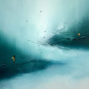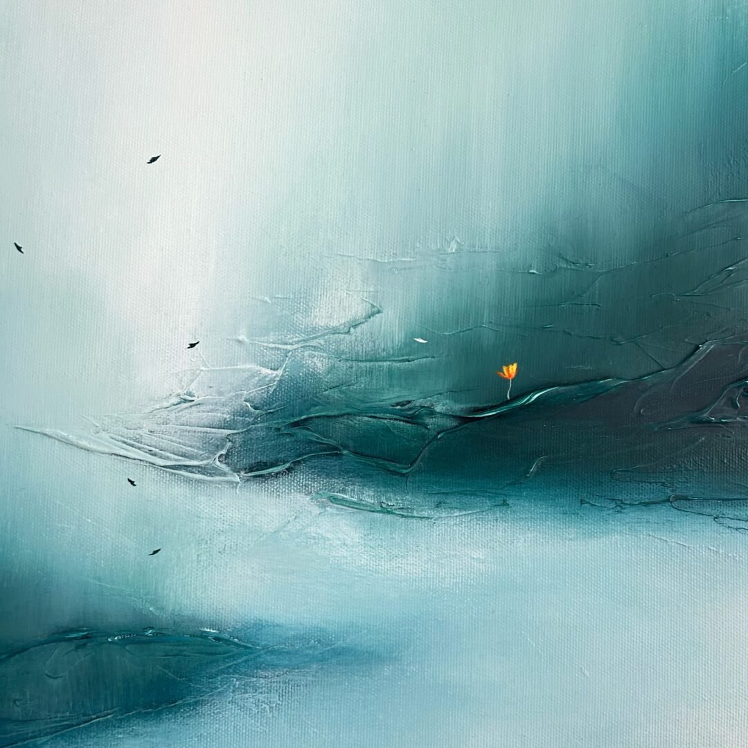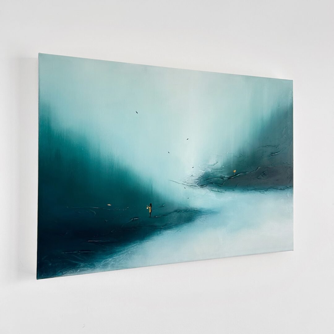 Processo: L’opera si sviluppa su una base materica caratterizzata da sfumature morbide che tendono verso l’alto, creando un senso di ascensione e respiro.