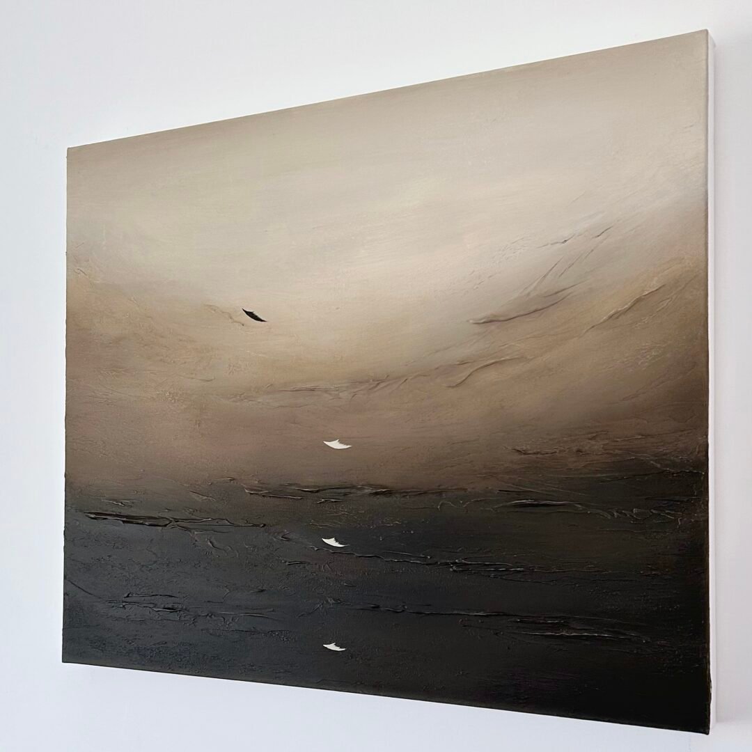 Processo: L’opera è costruita in pasta materica, creando una superficie tattile e profonda, e successivamente dipinta in acrilico.